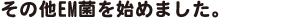 EM菌のEMとは、 Effective(有用)Microorganisms(微生物群)の略語です。 "共存共栄する有用な微生物の集まり"という意味で、EM菌は生き物です。化学肥料や農薬のような使用方法では効果が上がりません。 自然界には多種多様な微生物がおりますが、これら生物相(微生物相)を改善することは簡単なことではありません。 EM菌の活用はこの中の生物性(微生物性)の改善を図ることが主な目的です。この生物性(微生物性)の改善は物理性・化学性の改善にもつながりますが、効果的にEMを活用する場合には化学性、物理性などの土壌診断を行い、適切な改善を行うことが大切です。 是非、当社までお気軽にご相談ください!